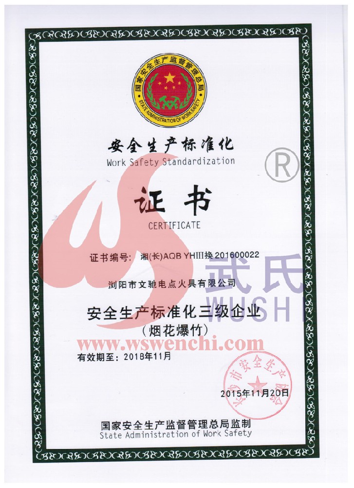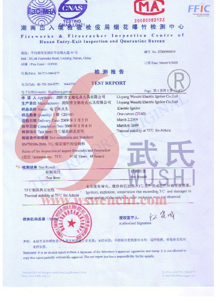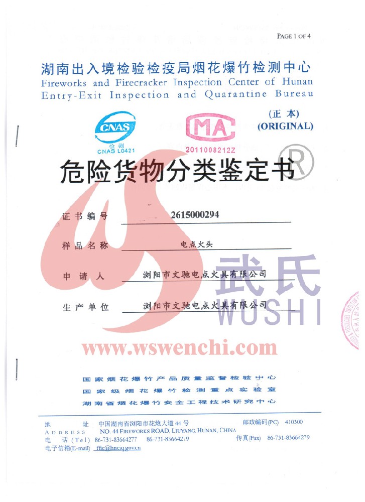 瀏陽市文馳電點(diǎn)火具有限公司(原培文電子點(diǎn)火器材廠),創(chuàng)建于1998年,是一家專業(yè)從事研制銷售電子點(diǎn)火產(chǎn)品的民營科技企業(yè),是我國第1枚煙花用電點(diǎn)火頭生產(chǎn)者,是《煙花爆竹電點(diǎn)火頭國標(biāo)》牽頭起草單位。公司位于中國“煙花之鄉(xiāng)”湖南省瀏陽市,地理位置優(yōu)越,交通便利。 我公司研制的對象是用電能引燃火藥、做機(jī)械功等預(yù)定功能的一次性使用的元件或裝置,包括電點(diǎn)火頭(英文名ElectricMatch or Electric Igniter,中文俗稱“電火柴”或“電發(fā)火頭”)、電點(diǎn)火管和延期電點(diǎn)火管;我們估且在以后的產(chǎn)品技術(shù)欄中將我們研究的產(chǎn)品統(tǒng)稱為電點(diǎn)火具,將電點(diǎn)火器看成是用于提供和控制供給電點(diǎn)火元件點(diǎn)火的電能器材;我們研究的電點(diǎn)火橋路有橋絲式、無橋絲···